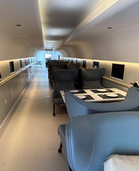2. 空间利用率优化:针对火车头、飞机等异形空间,创新采用模块化布局。蒸汽火车头车厢餐厅的餐位密度达2.8人/平方米,较传统餐厅提升30%;飞机民宿餐厅的睡眠区与用餐区通过可折叠家具实现动态切换,使用效率提高45%。